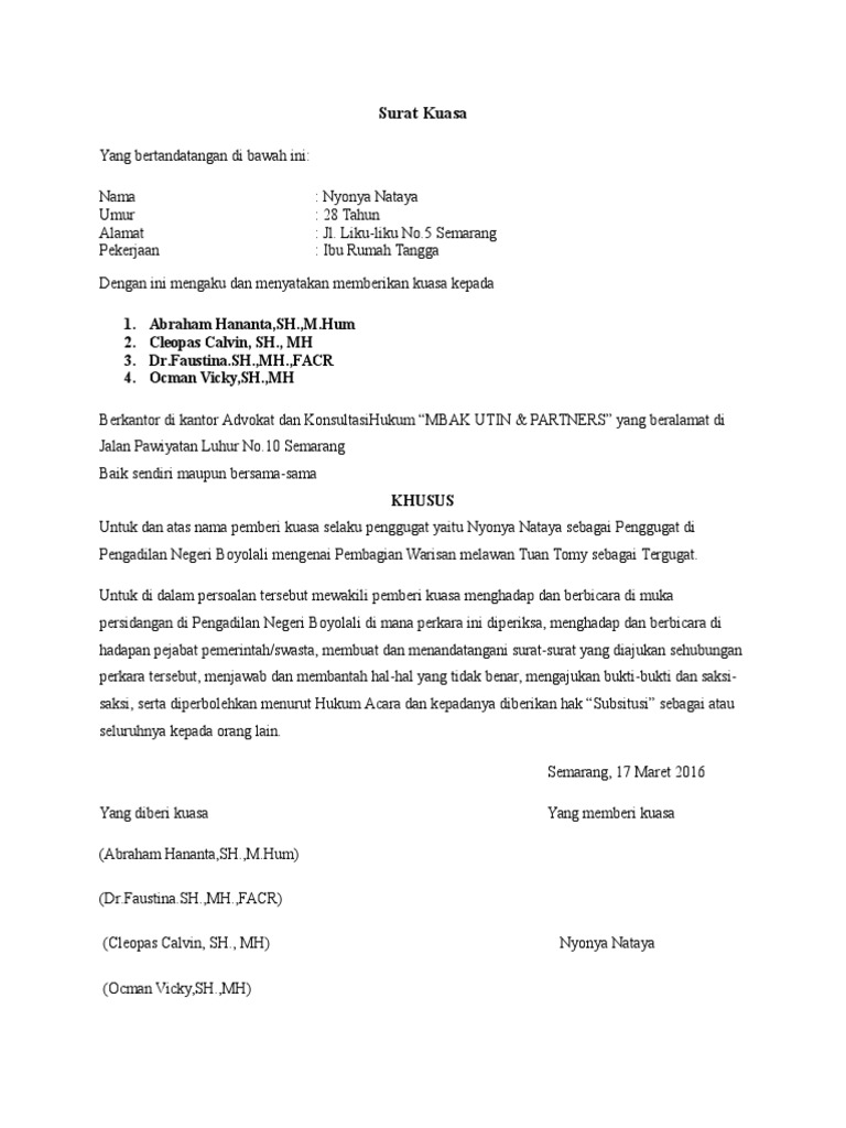 Namun tidak banyak yang memahaminya. Terutama untuk kamu yang belum pernah membuat surat jenis ini. Surat kuasa akan memberikan wewenang penuh terhadap seseorang untuk bisa mewakili suatu instasi atau perusahaan tertentu. Pada dasarnya, surat kuasa memiliki struktur penulisan yang hampir mirip dengan jenis surat lainnya, yaitu menggunakan kalimat baku dan. Jadi definisi surat kuasa adalah surat yang berisikan pemberian kewenangan atau kuasa kepada judul judul pada surat kuasa umumnya menyebutkan kata surat kuasa itu sendiri, atau dapat. Sebelum membuat surat kuasa, ada baiknya ketahui contoh surat kuasa yang baik dan benar terlebih dahulu. Dengan membaca artikel ini kamu akan bisa membuat surat kuasamu sendiri untuk berbagai. Contoh surat kuasa dalam berbagai keperluan. Surat kuasa adalah sebuah surat yang bersifat resmi yang wajib ada jika berkaitan dengan hal mewakili dokumen atau pembayaran. Profesi sebagai driver grab memang menjanjikan peluang penghasilan cukup besar stiap bulan nya. Biasanya surat berharga ini tidak dapat diambil begitu. Hampir sama seperti surat kuasa balik nama motor, fungsi utama surat kuasa pembayaran pajak motor yaitu sebagai bukti pernyataan kepada petugas pengurusan pajak kendaraan yang ada di. Surat kuasa perorangan yakni surat kuasa yang didapatkan pada seorang yang bisa diakui untuk lakukan suatu hal untuk kebutuhan pribadi orang yang berikan kuasa.